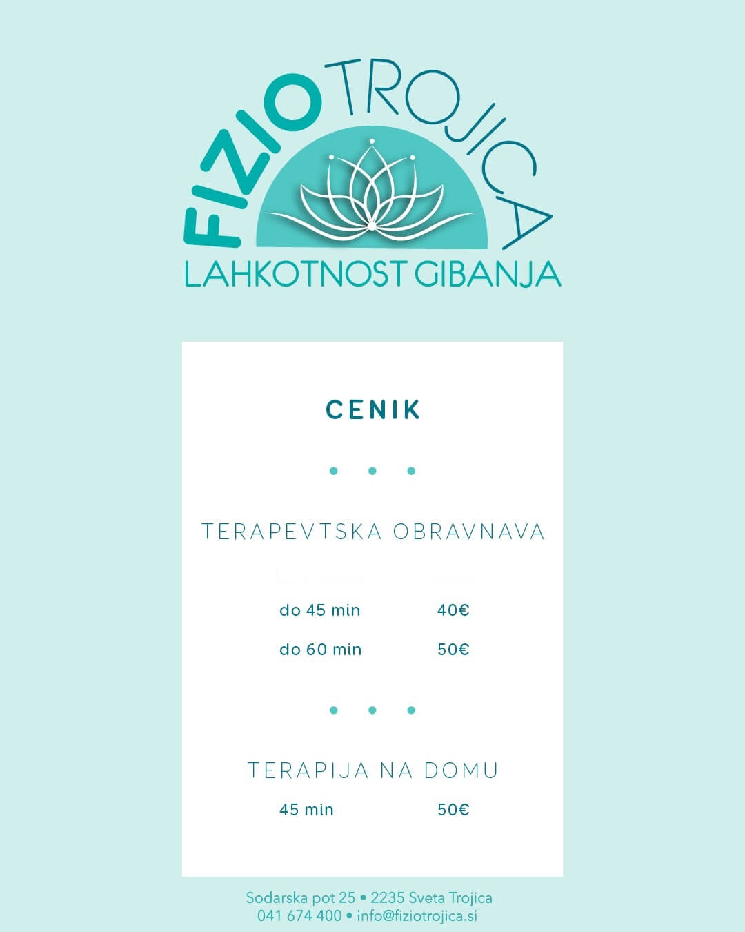 Terapevtsko vadbo izvajam tudi individualno v prostorih Fizio Trojica.